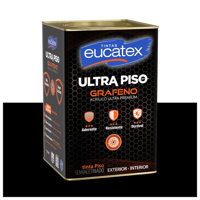 Eucatex Ultra Piso Grafeno é uma ultra tinta acrílica para pisos cimentados, aditivada com nova tecnologia grafeno. a nanotecnologia grafeno atribui ao produto maior resistência, alta aderência, super durabilidade, possuindo ainda acabamento semiacetinado que reduz a pega de sujeira.