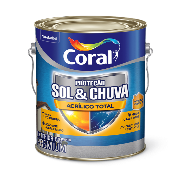 Tinta Acrílica Proteção Sol e Chuva Total 3,2l Base Mf Fosco Coral Coral