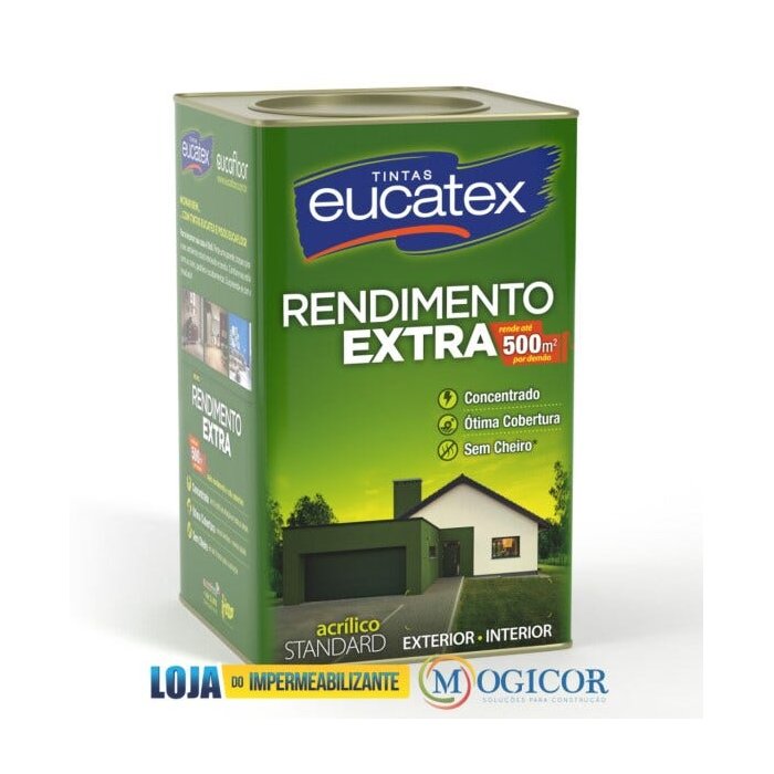 Rendimento Extra Tinta Acrílica Standard é um produto super concentrado, proporcionando alto rendimento, ótima cobertura e bom acabamento. Uso exterior e interior.