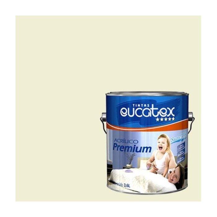 Descrição: Eucatex Acrílico Premium Sem Cheiro é uma tinta de alta performance para quem busca melhor desempenho e maior durabilidade e rendimento em pinturas de áreas externas e internas. De fácil aplicação, oferece ótima cobertura, baixo respingamento, é resistente às intempéries, tem excelente alastramento e ótimo acabamento. É indicada para superfícies externas e internas de reboco, massa acrílica, texturas, concreto, fibrocimento, repinturas sobre PVA e acrílico e superfícies internas de massa corrida e gesso.