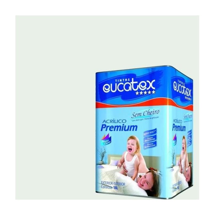 Descrição Eucatex Acrílico Premium Sem Cheiro é uma tinta de alta performance para quem busca melhor desempenho e maior durabilidade e rendimento em pinturas de áreas externas e internas. De fácil aplicação, oferece ótima cobertura, baixo respingamento, é resistente às intempéries, tem excelente alastramento e ótimo acabamento. É indicada para superfícies externas e internas de reboco, massa acrílica, texturas, concreto, fibrocimento, repinturas sobre PVA e acrílico e superfícies internas de massa corrida e gesso.