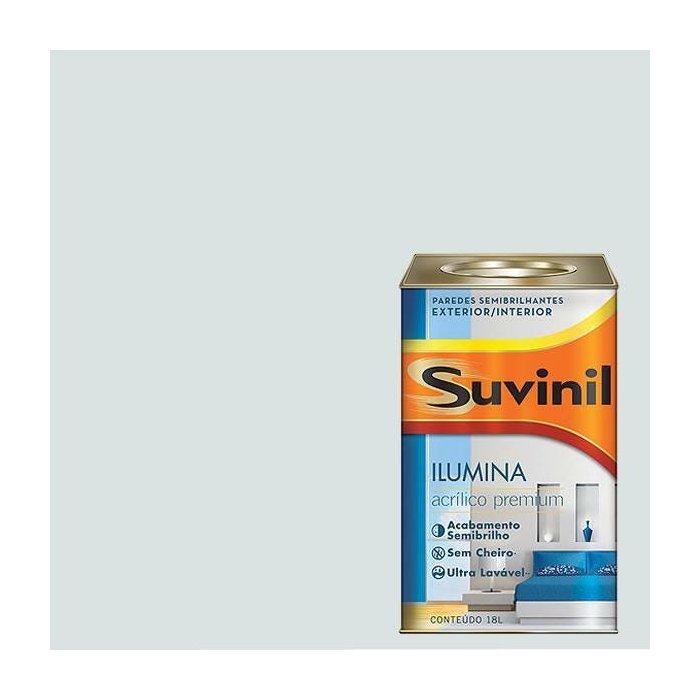 Descrição: Suvinil Acrílico Premium Semibrilho: É uma tinta de acabamento semibrilho de fácil aplicação, secagem rápida e baixo odor. Devido a sua intensidade de brilho, proporciona alta impermeabilidade quando aplicada em ambientes externos e em superfícies internas oferece grande facilidade de limpeza.
