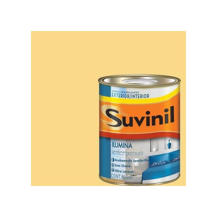 Descrição: Suvinil Acrílico Premium Semibrilho: É uma tinta de acabamento semibrilho de fácil aplicação, secagem rápida e baixo odor. Devido a sua intensidade de brilho, proporciona alta impermeabilidade quando aplicada em ambientes externos e em superfícies internas oferece grande facilidade de limpeza.