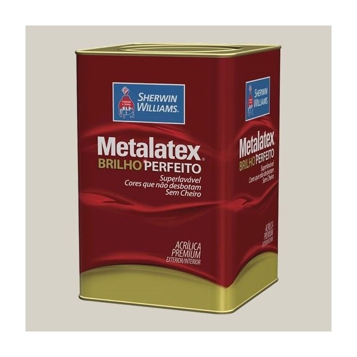 A Tinta Acrílica Metalatex Brilho Perfeito com um acabamento Semi-brilho perfeito que além da excelente cobertura, da alta resistência e durabilidade, secagem rápida e ótimo rendimento, reforça o compromisso e respeito da Sherwin-Williams com o meio ambiente. Tinta Acrílica Metalatex desenvolvida com matérias-primas de alta tecnologia, sua formulação permite que a Pintura seja feita em áreas internas ocupadas, garantindo que o ambiente permaneça sem cheiro* em até 1 hora após a aplicação.