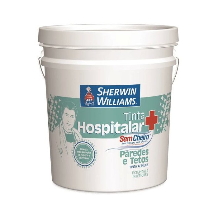 A Tinta Hospitalar Paredes e Tetos é uma tinta acrílica de acabamento acetinado, com baixo odor, boa resistência a manchas e penetração de vários produtos, permitindo uma fácil limpeza. Especialmente indicado para áreas sujeitas a respingos ou derramamentos de desinfetantes hospitalares, como áreas pediátricas, enfermarias, áreas de circulação e salas de espera.