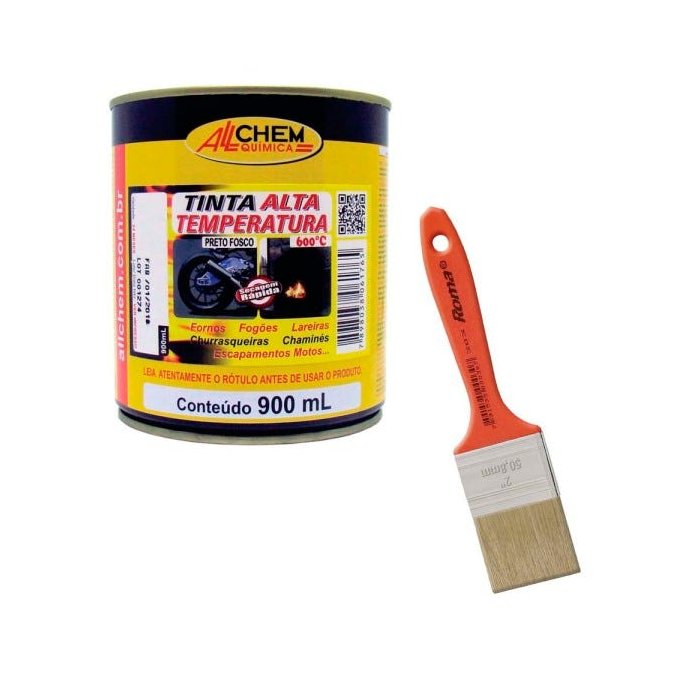 Tinta Alta Temperatura 600° Preto Allchem + Trincha 2 Pol