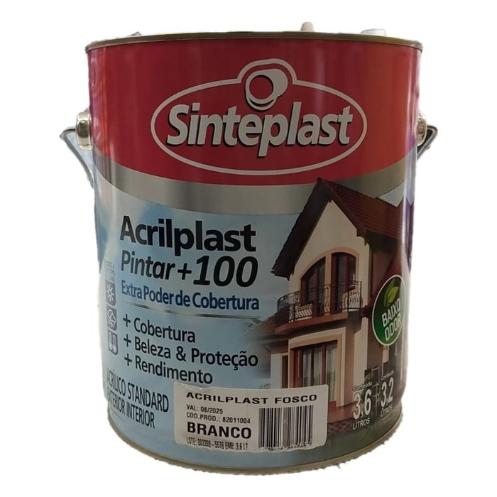 Descrição:é uma tinta sem cheiro (após 03 horas de aplicação em local arejado), indicado para pintura de superfícies internas e externas de alvenaria, massa corrida ou acrílica, texturas, gesso e fibrocimento.acrilplast acetinado, fosco e semi brilho possui ótimo poder de cobertura, alastramento e rendimento, com acabamento finíssimo, além de proporcionar boa resistência às intempéries. dicas de aplicação: as superfícies devem estar limpas, secas, livres de graxa, mofo, poeira e restos de materiais contaminantes.