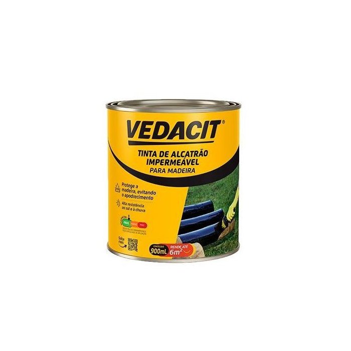 Vedacit Tinta De Alcatrão Impermeável para madeira é uma tinta à base de alcatrão de hulha, resistente ao sol e à chuva, que evita o apodrecimento da madeira e a infiltração de água.
