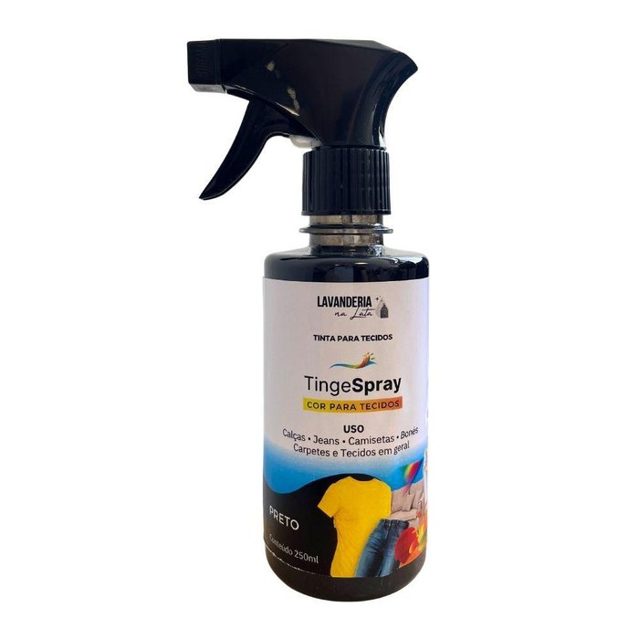 Lançamento exclusivo: a primeira tinta permanente para qualquer tipo de tecido! Transforme o visual de seus itens de vestuário e acessórios de tecido com TingeSpray, a solução perfeita para dar vida nova às suas peças! Aplicação em: algodão, poliéster, nylon, rayon(viscose), linho, denin(jeans), veludo, suede. Use em calças, jeans, bermudas, camisetas, estofados, carpetes, poltronas, mochilas e calçados. *Não recomendado para peças de couro.