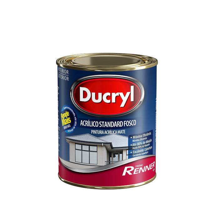 Ducryl Rende Mais é uma tinta especialmente desenvolvida para oferecer muito mais rendimento. A alta consistência de Ducryl Rende Mais permite uma diluição de até 80%, com alto poder de cobertura, baixo odor e alta lavabilidade. Com Ducryl Rende Mais você pode pintar mais de 500m² (lata 18L) por demão. Além disso, é uma tinta de fácil aplicação que proporciona um acabamento fosco superior e beleza única para a sua pintura. Indicada para pintura de superfícies externas e internas de alvenaria, reboco, gesso, cerâmica não vitrificada e blocos de cimento.