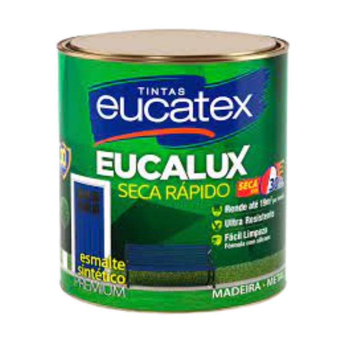 EUCALUX SECA RAPIDO PREMIUM ESMALTE SINTETICO É UM ESMALTE SINTETICO NA CATEGORIA PREMIUM DE SECAGEM SUPER-RAPIDA DE ALTA PERFORMANCE,RENDIMENTO EXCELENTE,ACABAMENTO FINO E DURAVEL. SUA FORMULA COM SILICONE CRIA UMA PELICULA LISA FACILITANDO A LIMPEZA. INDICADO PARA PINTURA EM METAIS,FERROSOS,MADEIRA,ALUMINIO,GALVANIZADO,PVC E ALVENARIA.USO EXTERNO E INTERNO. SUA FORMULA INOVADORA P-ERMITE A APLICAÇÃO ENTRE AS DEMÃO EM 45 MINUTOS.