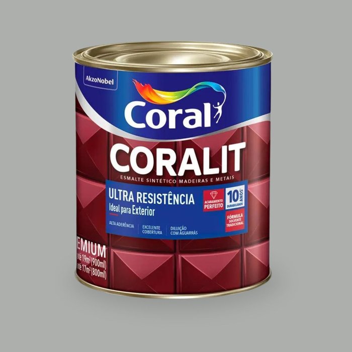 Tinta Esmalte Coralit Sintético Ultra Resistência Cinza Platina Brilhante 900Ml