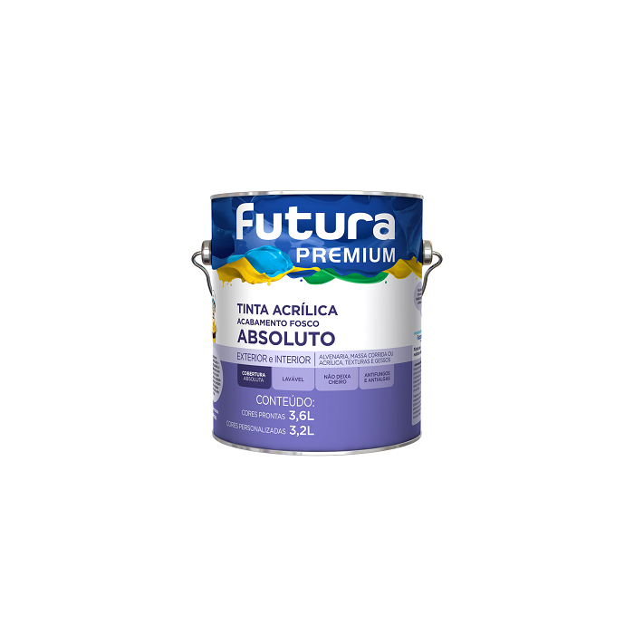 Atenção! As tintas são tingidas na máquina de sistema tintométrico Futura de acordo com as cores que o cliente solicitar, portanto, as bases da tinta são uma composição de 3,2L onde adicionamos 400ml de pigmentos pra resultar na cor desejada. O rendimento permanece sendo o mesmo anunciado.