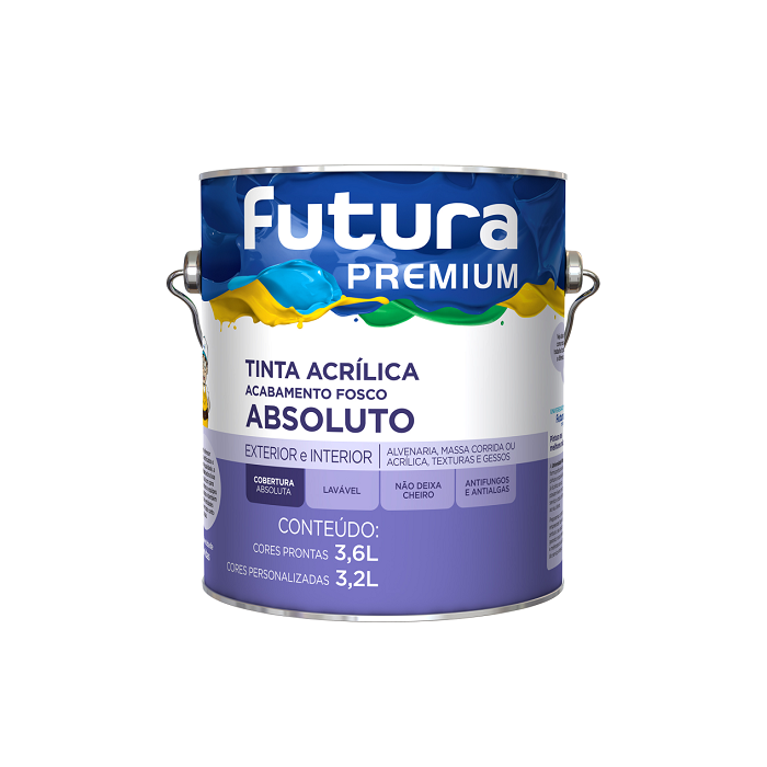 Atenção! As tintas são tingidas na máquina de sistema tintométrico Futura de acordo com as cores que o cliente solicitar, portanto, as bases da tinta são uma composição de 3,2L onde adicionamos 400ml de pigmentos pra resultar na cor desejada. O rendimento permanece sendo o mesmo anunciado.
