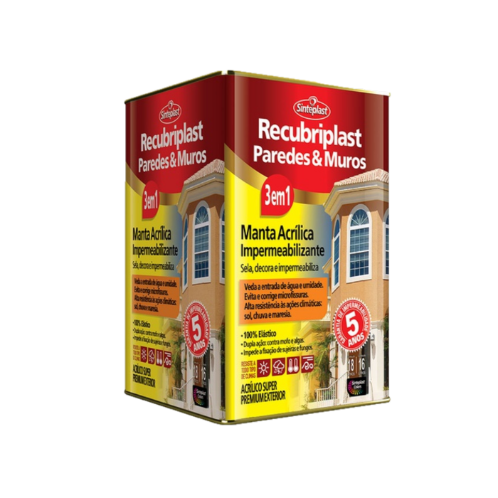 Impermeabilizante acrílico para fachadas, muros, empenas e paredes em geral. Aplicando nas condições recomendadas, após o período de cura, forma uma película impermeável (autolavável), elástica, de elevada aderência e alta resistência aos mais agressivos fatores climáticos.Uso:Produto formulado para paredes de reboco, massas, argamassas, tijolos, blocos de concreto, blocos cerâmicos não esmaltados, placas Dry Wall e outros tipos de alvenaria em geral.AS CORES APRESENTADAS NA IMAGENS SÃO ILUSTRATIVAS, PODENDO APRESENTAR VARIAÇÃO DE ACORDO COM O SEU CELULAR, PARA MELHOR VISUALIZAÇÃO ELEVAR O CELULAR A ALTURA DOS OLHOS.