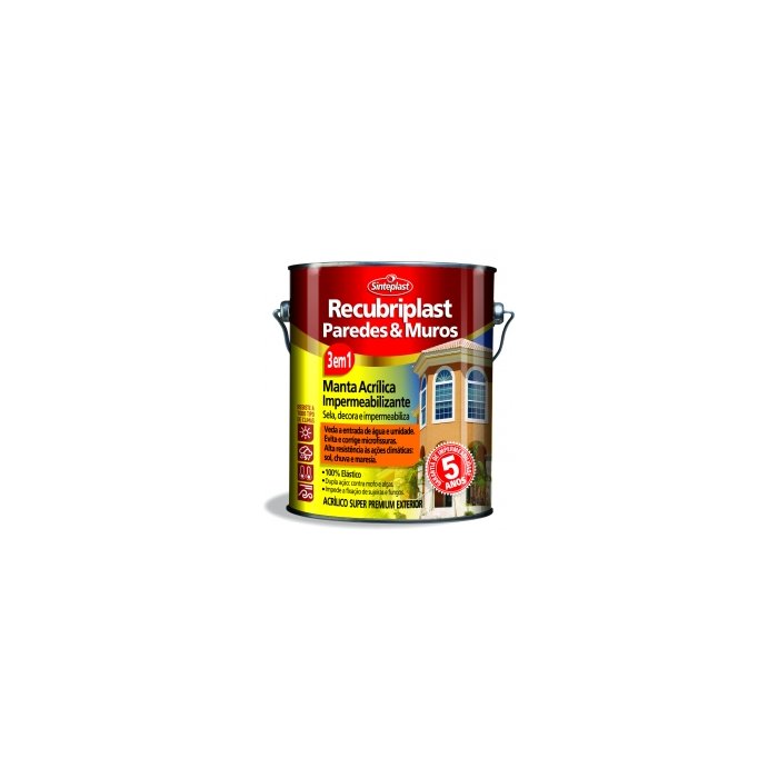 Impermeabilizante acrílico para fachadas, muros, empenas e paredes em geral. Aplicando nas condições recomendadas, após o período de cura, forma uma película impermeável (autolavável), elástica, de elevada aderência e alta resistência aos mais agressivos fatores climáticos.Uso:Produto formulado para paredes de reboco, massas, argamassas, tijolos, blocos de concreto, blocos cerâmicos não esmaltados, placas Dry Wall e outros tipos de alvenaria em geral.AS CORES APRESENTADAS NA IMAGENS SÃO ILUSTRATIVAS, PODENDO APRESENTAR VARIAÇÃO DE ACORDO COM O SEU CELULAR, PARA MELHOR VISUALIZAÇÃO ELEVAR O CELULAR A ALTURA DOS OLHOS.