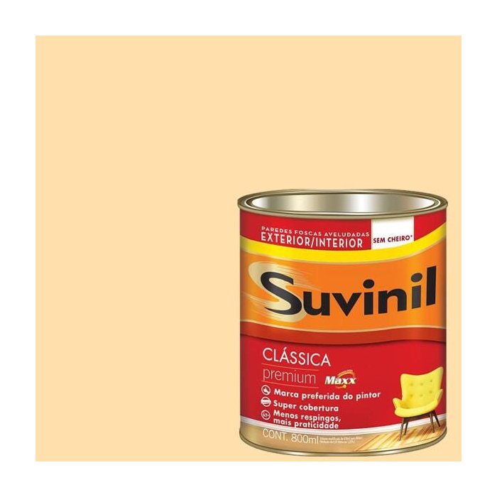 Descrição: Tinta Látex Maxx Premium Suvinil. Tinta látex com acabamento fosco aveludado. Indicada para utilização tanto em ambientes internos como externos, apresentando alta resistência, rendimento e cobertura.