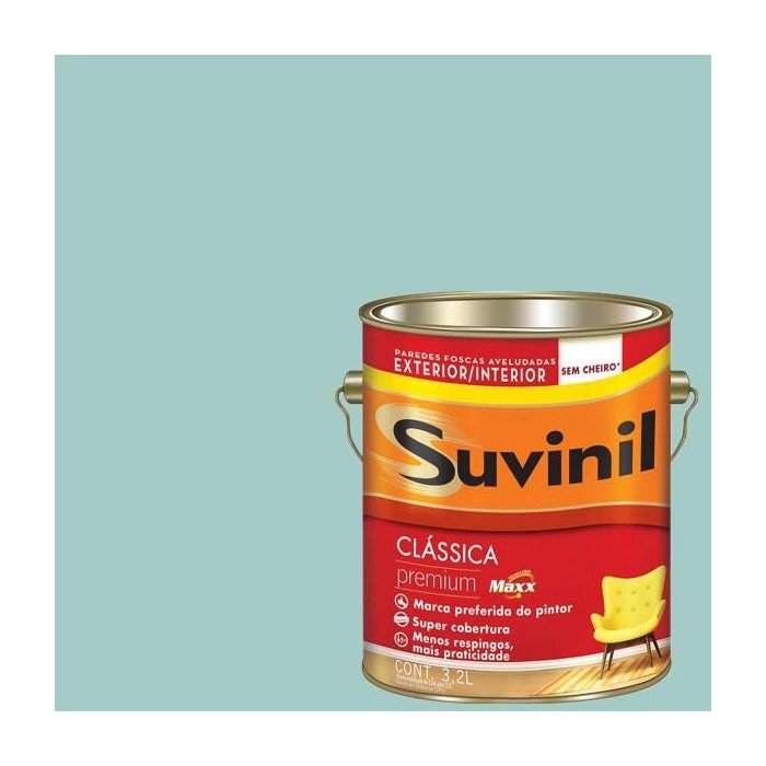 Descrição: Tinta Látex Maxx Premium Suvinil. Tinta látex com acabamento fosco aveludado. Indicada para utilização tanto em ambientes internos como externos, apresentando alta resistência, rendimento e cobertura.