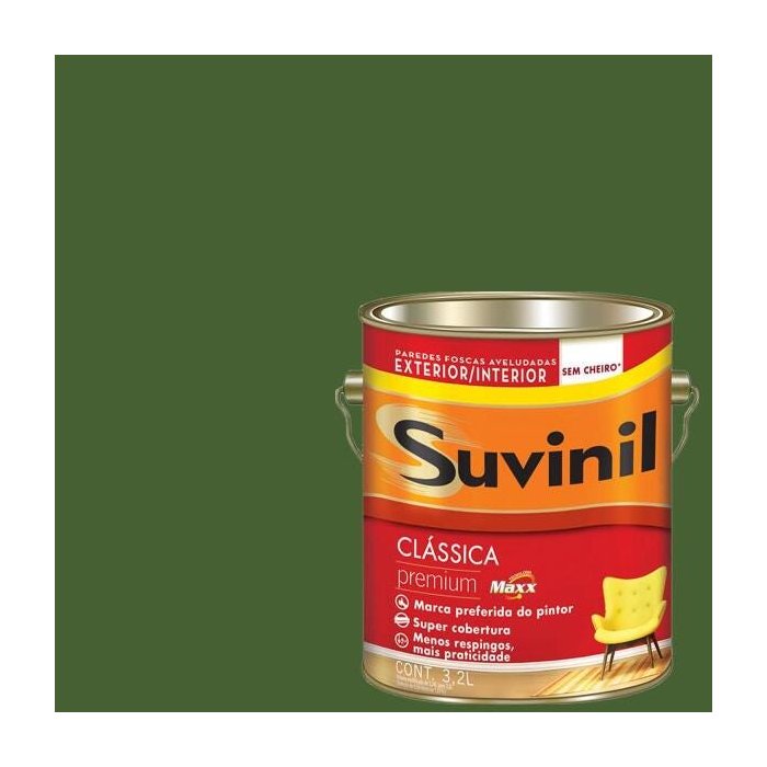 Descrição: Tinta Látex Maxx Premium Suvinil. Tinta látex com acabamento fosco aveludado. Indicada para utilização tanto em ambientes internos como externos, apresentando alta resistência, rendimento e cobertura.