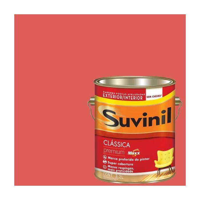 Descrição: Tinta Látex Maxx Premium Suvinil. Tinta látex com acabamento fosco aveludado. Indicada para utilização tanto em ambientes internos como externos, apresentando alta resistência, rendimento e cobertura.