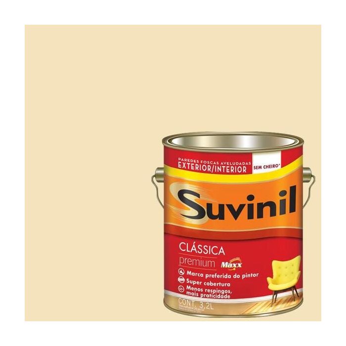 Descrição: Tinta Látex Maxx Premium Suvinil. Tinta látex com acabamento fosco aveludado. Indicada para utilização tanto em ambientes internos como externos, apresentando alta resistência, rendimento e cobertura.