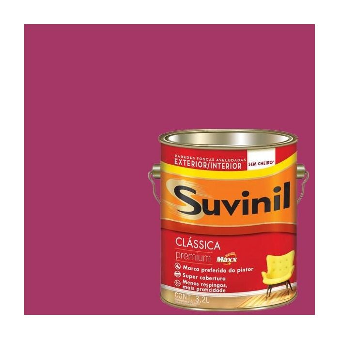 Descrição: Tinta Látex Maxx Premium Suvinil. Tinta látex com acabamento fosco aveludado. Indicada para utilização tanto em ambientes internos como externos, apresentando alta resistência, rendimento e cobertura.
