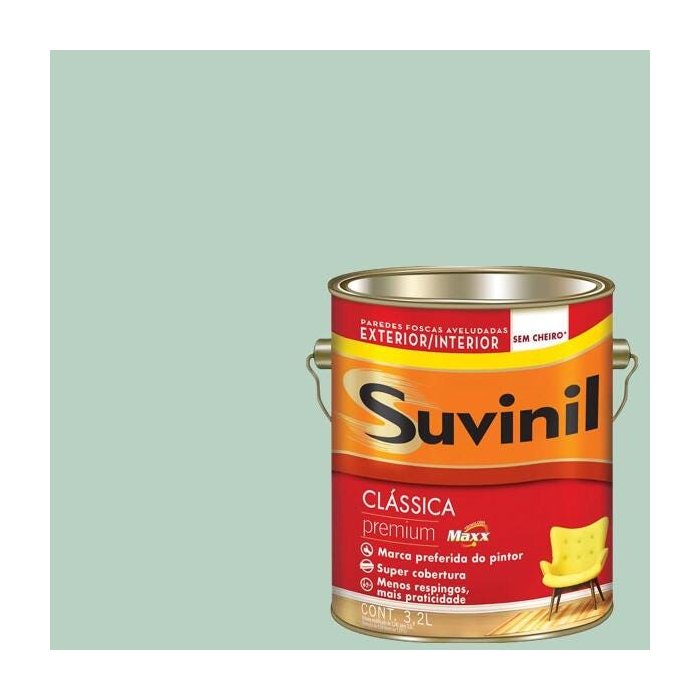 Descrição: Tinta Látex Maxx Premium Suvinil. Tinta látex com acabamento fosco aveludado. Indicada para utilização tanto em ambientes internos como externos, apresentando alta resistência, rendimento e cobertura.