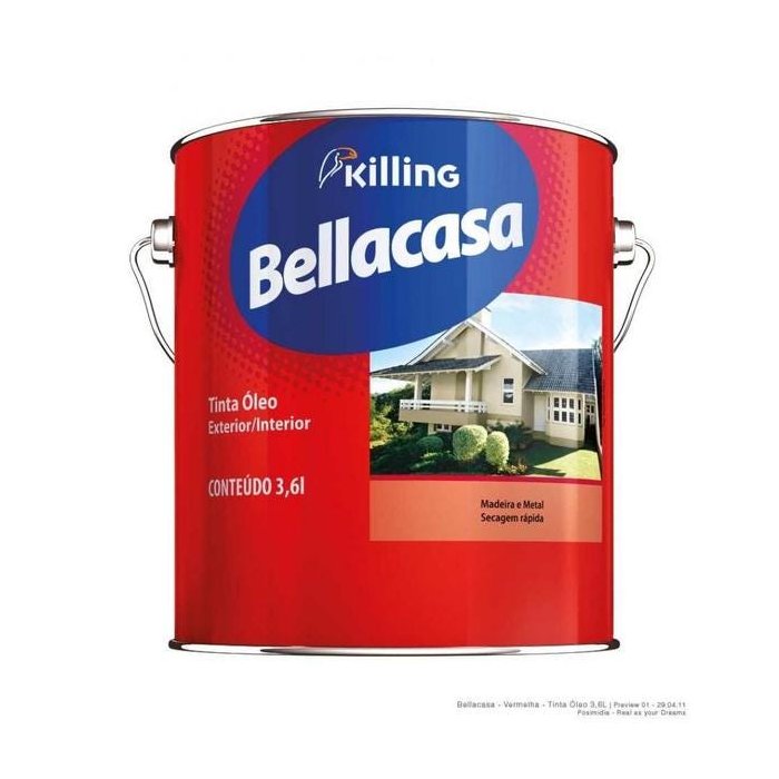 Tinta Oleo Bellacasa Std 3.6lt Branco Bellacasa Tinta Óleo Madeira e Metal Tinta Óleo Indicada para acabamentos em superfícies externas e internas de madeira e ferro. Apresenta fácil aplicação e secagem rápida. Classificada conforme ABNT NBR 11.702 de 04/1992 – Tipo 4.2.2 Composição Resinas alquídicas de óleos vegetais, solventes de hidrocarbonetos alifáticos, pigmentos orgânicos e inorgânicos inertes, e aditivos. EMBALAGEM Disponível em 18l, 3,6 e 900ml DILUIÇÃO Pincel ou Rolo: 10 a 15% com KISA-RÁS. Pistola: 15% com KISA-RÁS. SECAGEM Manuseio: 6 a 8 horas. Completa:10 a 12 horas. CORES São 20 disponíveis e mais 2024 cores do Sistema Tintometrico Colorline APLICAÇÃO Pincel de cerdas macias, rolo ou pistola RENDIMENTO 20 a 40 m² / galão de 3,6 litros / demão NÚMERO DE MÃOS 2 a 3 demãos, com intervalo de 12 horas entre demãos
