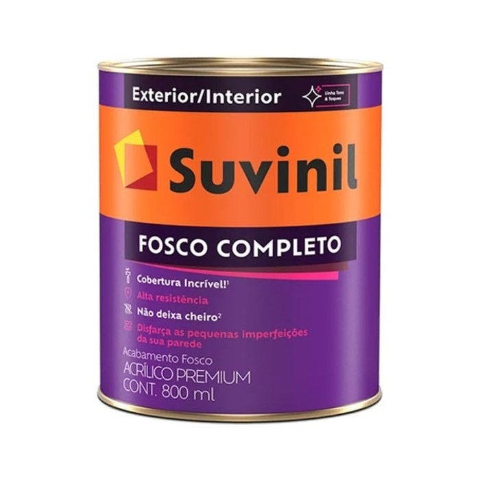-Suvinil Fosco Completo disfarça as imperfeições na parede. Ela tem uma cobertura impecável, com acabamento fosco.
