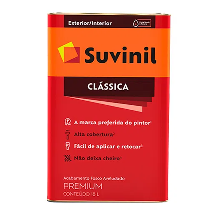 Tinta Suvinil Clássica Lírio 18L para aplicação em paredes.
