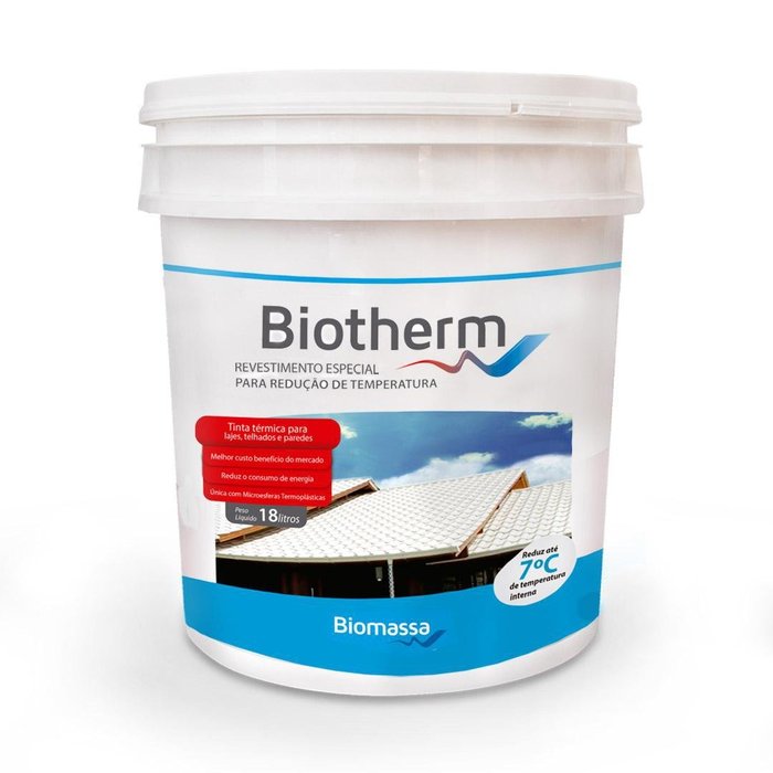 Biotherm é um revestimento base água, acrílico especial de alta refletância e baixa condutividade térmica capaz de refletir a radiação solar, evitando assim, que seja convertido em calor no ambiente. Biotherm trata os efeitos da radiação e condução em coberturas e paredes de diversos materiais, reduzindo a temperatura interna do ambiente garantindo maior conforto e menor consumo de energia elétrica. Biotherm tem alta resistência e rendimento, requer mínima manutenção e garante baixo acúmulo de sujidade e mofo o que proporciona resultados de eficiência em isolamento por muito mais tempo que as tintas convencionais.
