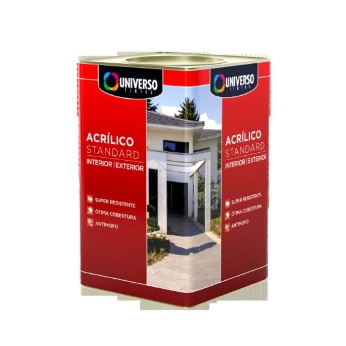 Descrição: Universo Acrílico Standard Fosco é uma tinta de alta qualidade, excelente cobertura e durabilidade, de baixo odor e secagem rápida.