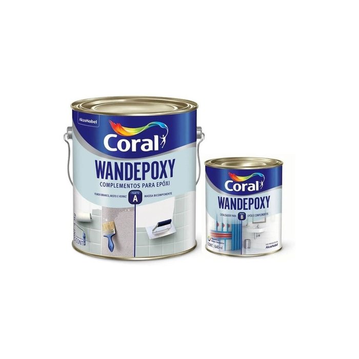 Descrição do Produto Obs; Com Catalizador Amina para esmalte e verniz , caso queira o (Amida) nos mande mensagem apòs a compra. Tinta Esmalte Epóxi Coral Wandepoxy Catalisável 2,7 L Esmalte catalisável à base de resina epóxi que depois de aplicado e seco, forma uma película de elevada dureza, excelente resistência à abrasão, umidade, alcalinidade, ótima aderência em diversas superfícies, além de suportar temperaturas de até 120ºC. Imagens meramente ilustrativas. Especificações técnicas Marca Coral Classificação Esmalte Acabamento Brilhante Embalagem 2,7L Rendimento Rende até 18 m²/litro. Diluição A catálise é feita adicionando-se a Parte B (catalisador) sobre a Parte A (tinta base), de forma lenta, gradual e com homogeneização constante, na proporção de 4 partes em volume da Parte A para 1 parte em volume da Parte B. A diluição deverá ser realizada após 15 a 20 minutos depois de adicionado o agente de cura (mistura da Parte A + Parte B). Após homogeneizar bem a mistura, se necessário, dilua no máximo 10% em volume com Diluente Wandepoxy. Demão 2 a 3 demãos. Secagem Ao toque: 2 horas; Ao manuseio: 6 horas;; Cura total: 7 dias. Entre demãos de 12 a 48 horas Ferramenta Rolo de lã de pelo baixo para epóxi, pincel ou trincha. Pistola. Indicação Indicado para superfícies de concreto, reboco, alvenaria, azulejos, metálicas em geral e em superfícies de madeira internas. Aplicação É ideal para pinturas de banheiros, cozinhas, refeitórios, hospitais, tubulações industriais e domésticas, pisos de concreto entre outras superfícies. Proporciona alta resistência à umidade, água, substância química e a abrasão, além de ótima aderência aos mais diversos tipos de superfícies. Instruções de Uso Para funcionar o Esmalte Wandepoxy deve ser catalisado, misturando o componente A com o componente B. Existem dois tipos de catalisador, o amina e o amida: - Catalisador Amina: indicado para situações que requerem maior resistência química da película - Catalisador Amida: indicado para melhor acabamento e resistência à água Como preparar: - Homogeneizar bem o componente A e componente B separadamente antes de misturá-los. - Adicionar o componente B sobre o componente A, obedecendo sempre a proporção de 3 partes em volume do componente A para 1 parte em volume do componente B. - Homogeneizar bem a mistura e aguardar cerca de 15 minutos (tempo de indução) antes de diluir e aplicar. - Diluir com diluente para Wandepoxy utilizando de 15 a 25% em volume - Aplicar à pincel/ trincha, rolo próprio para epóxi, ou pistola de ar comprimido - cerca de 2 a 3 demãos. - Intervalo entre demãos mínimo de 12 horas e máximo de 48 - se exceder o tempo máximo lixar entre demãos. - A vida útil da mistura catalisada (A+B) é de 6 a 8 horas - não aplicar após este período.- Somente depois de 7 dias de aplicada a película do Wandepoxy alcançará seu máximo grau de resistência e de dureza.. Comentário Composição: Produtos à base de resinas epóxi em solução, solventes do tipo hidrocarbonetos aromáticos, álcoois, eteres glicólicos, esteres, cetonas, dióxido de titânio, pigmentos orgânicos e inorgânicos (diferentes tipos e teores, conforme a cor), cargas minerais inertes, além de aditivos