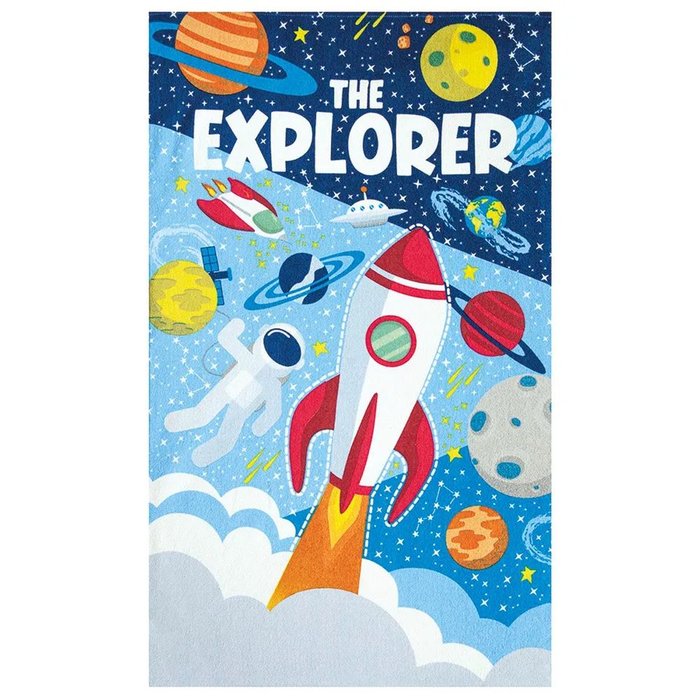 A Toalha de Banho Infantil The Explorer possui estampa eletrizante com temática de universo, ilustrando naves espaciais, astronauta e planetas em lindas cores vivas, as crianças aventureiras vão amar. Confeccionada em tecido 100% algodão e gramatura de 335 g/m², é felpuda e garante uma ótima absorção. Com um tamanho de 70cm x 1,15m, a Toalha de Banho Infantil Dohler The Explorer é perfeita para tornar a hora do banho mais divertida e alegre. Deixa a pele do pequeno sequinha e torna a rotina mais especial.