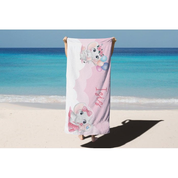 Toalha de Banho Infantil Verão Praia Elefante Rosa Personalizado Nome Isis Deluzz DLZ008420