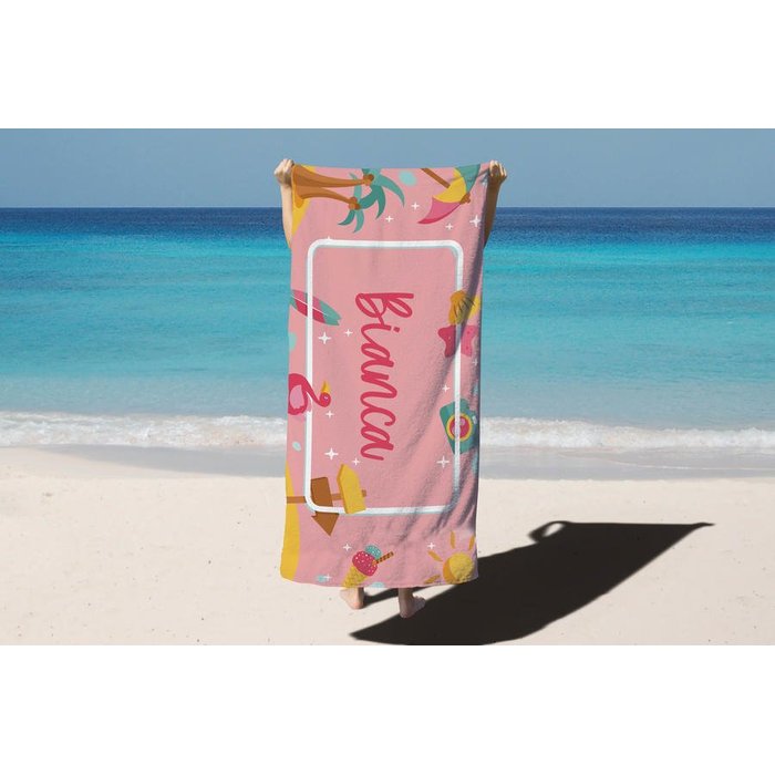 Toalha de Banho Infantil Verão Praia Rosa Divertido Nome Bianca Deluzz DLZ008505