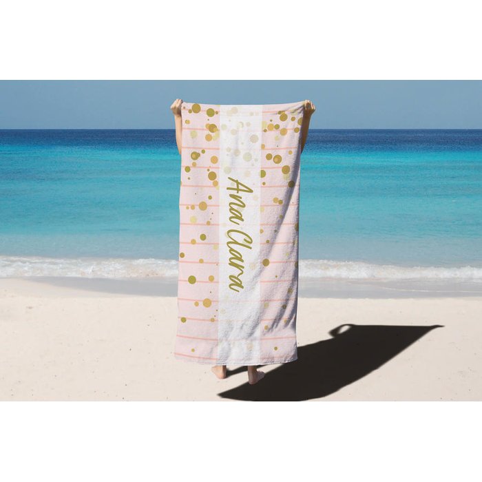 Toalha de Banho Verão Praia Bolinhas Personalizado Nome Ana Clara Deluzz DLZ007882