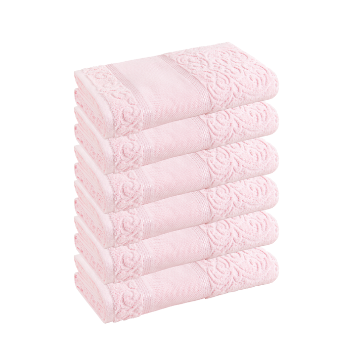 O anuncio corresponde 6 toalhas de lavabo para bordar na cor Rosa