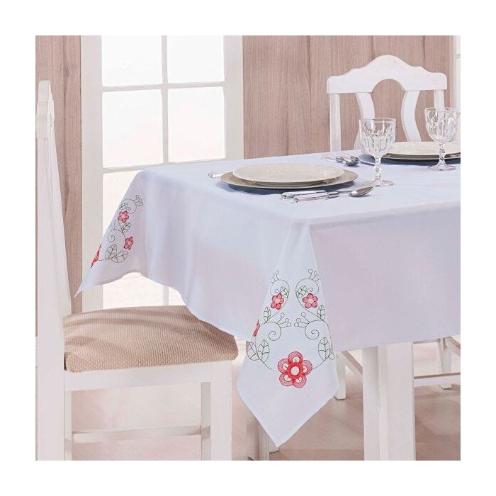Conteúdo da Embalagem: 01 Toalha de Mesa Bordada 1,40m x 1,40m. Composição: Tecido Tergal Verão 81% Poliéster / 19% Viscose. Cor: Branco.