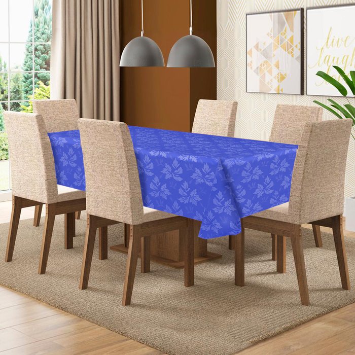Toalha De Mesa De 4 Lugares Tecido Jacquard Quadrada: Azul Royal Azul Royal