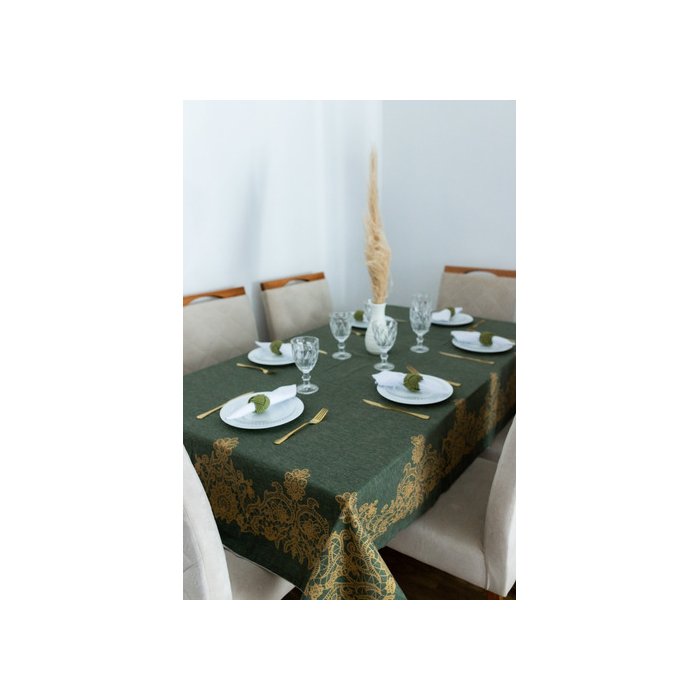 Toalha de Mesa Arabesco Dourado Natalino 2,70x1,60m – Elegância e Sofisticação para Sua Mesa!