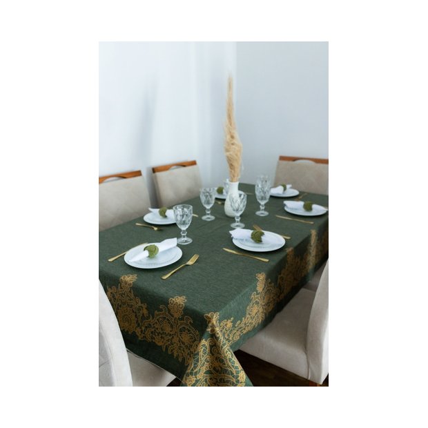 Toalha de Mesa Arabesco Dourado Natalino 2,70x1,60m – Elegância e Sofisticação para Sua Mesa!