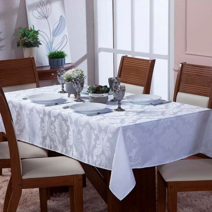 • 01 Toalha de Mesa Jacquard Medalhão Adamascado