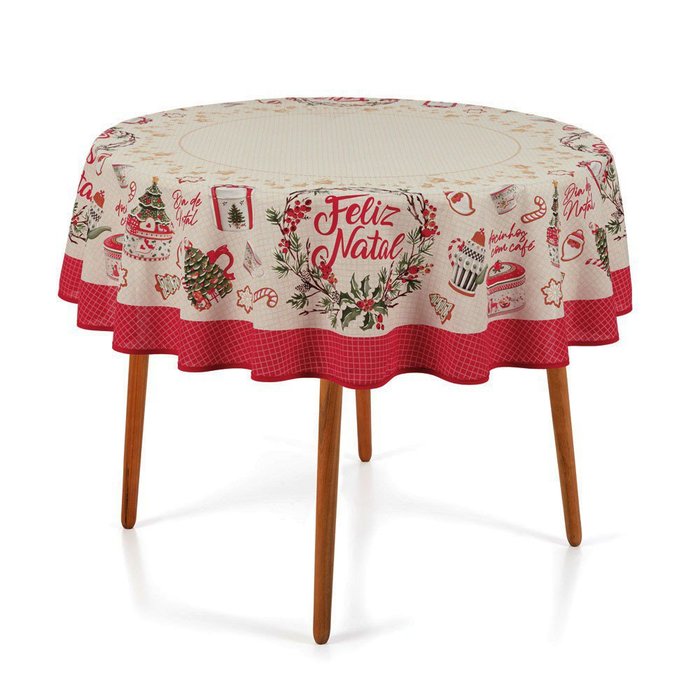 Toalha de Mesa Karsten Redonda 4 Lugares Natal Enfeites Natal -