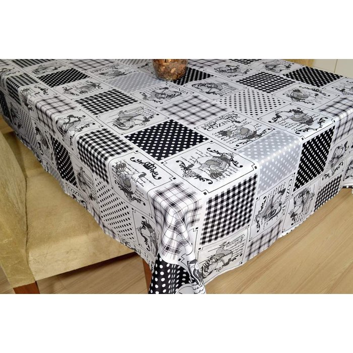 Toalha de Mesa Oxford - Galinhas Preto e Branco