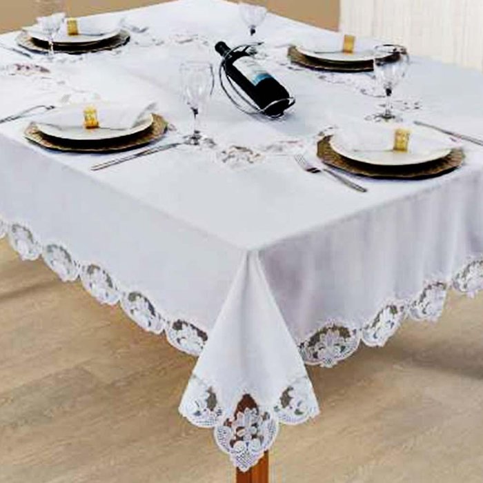 Produzida em tecido poli-bambu 100% poliéster. Confeccionada sobre a estrutura de poli-bambu com rico acabamento rendado centralizado e ao longo da toda a borda. Detalhes vazado entre os bordados. De uso prático promete deixar sua mesa com um toque especial. A linha Supremo tem como características produtos exclusivos para momentos especiais. Perfeita para deixar a sua mesa muito mais elegante, arrumada e bonita! Foto meramente ilustrativa. Contém: