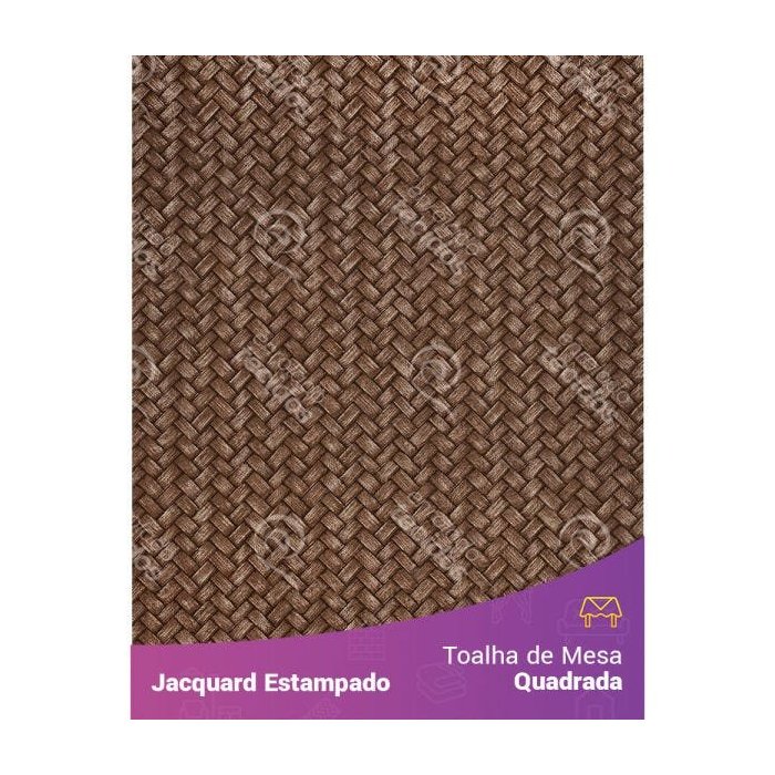 Toalha de Mesa Quadrada em Tecido Jacquard Estampado Palha Entrelaçada Marrom 2,20m X 2,20m