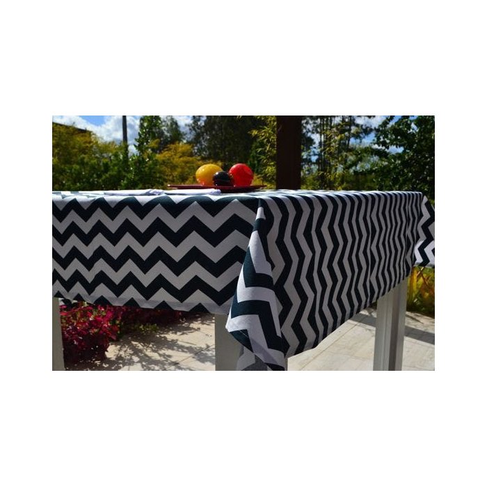 Toalha de Mesa Retangular 6 Lugares Azul Branco Zig Zag - 1,30 - 1,70