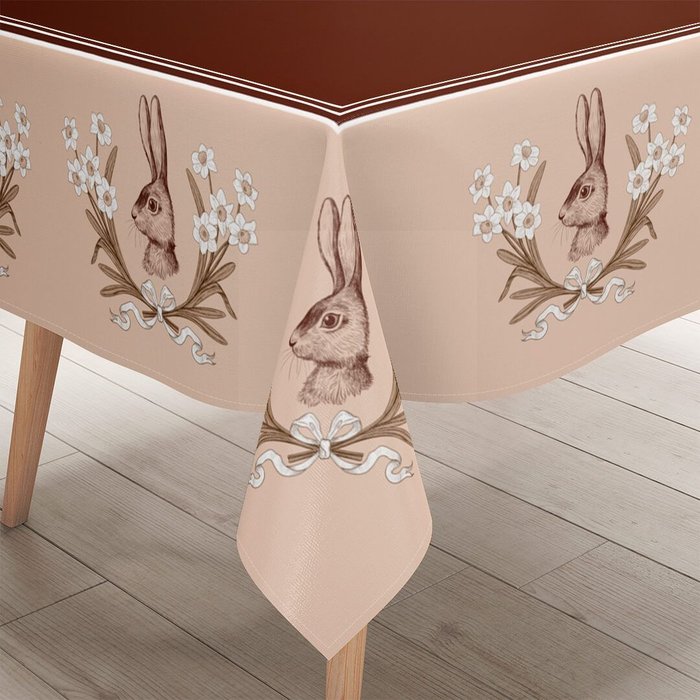 Toalha de Mesa Retangular de Páscoa Coelho Marrom
