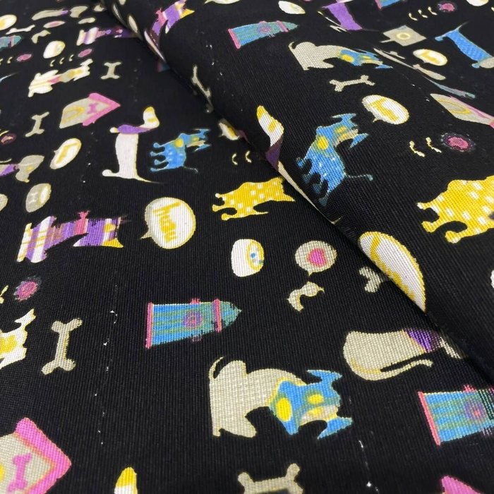 Toalha de Mesa Retangular em Tecido Impermeável Pet Cachorro Fundo Preto
